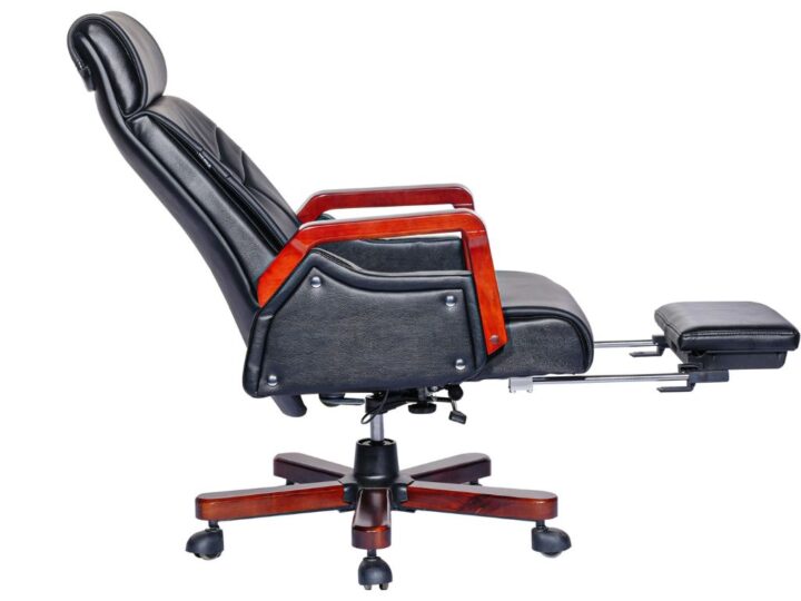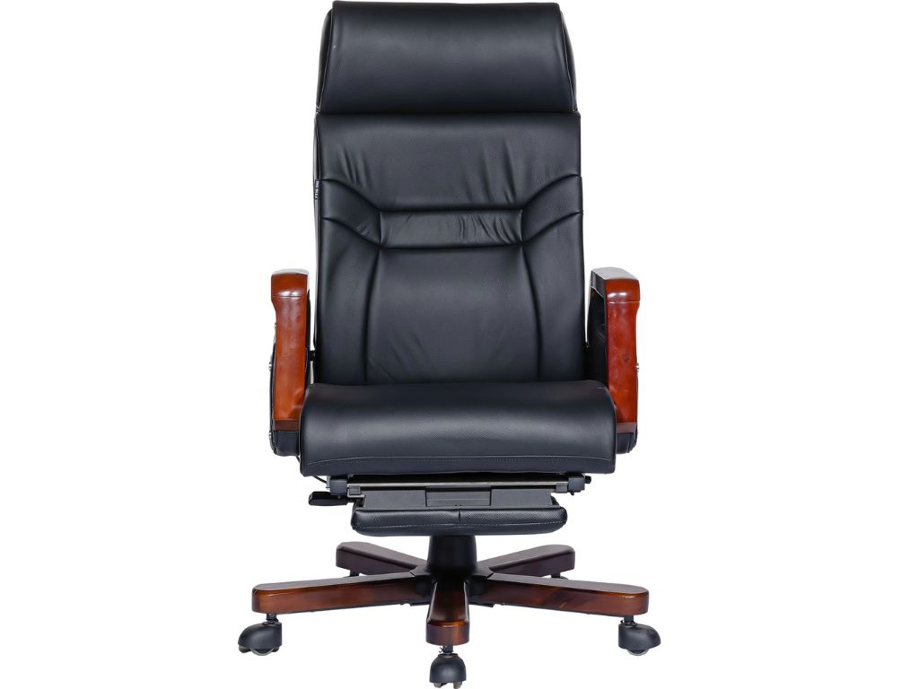 Chân và tay ghế bằng gỗ sơn cao cấp, vững chắc, tạo điểm nhấn sang trọng và hiện đại cho không gian văn phòng lãnh đạo. Kết cấu chắc chắn giúp ghế đứng vững khi sử dụng, đồng thời nâng cao giá trị và sự chuyên nghiệp cho không gian làm việc.