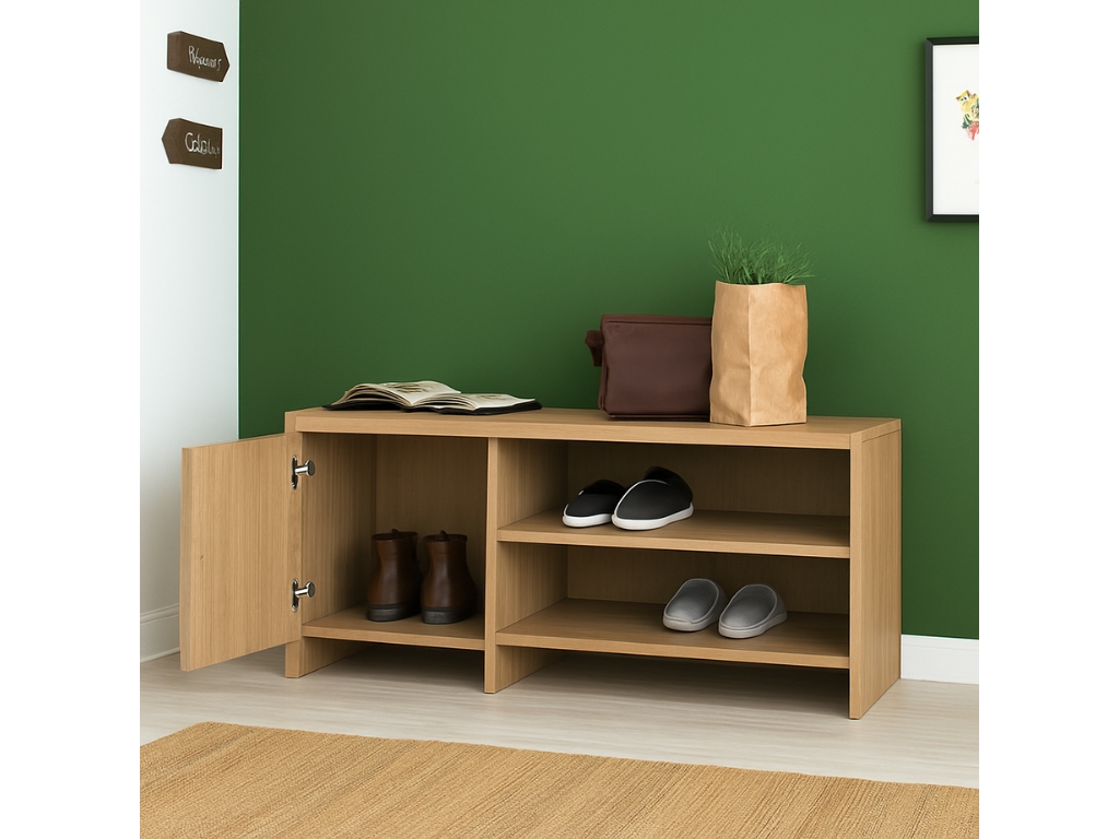 Với kích thước W1000 x D440 x H350 mm, Tủ giày GHT17 phù hợp với những không gian cần kệ giày thấp và rộng. Chiều ngang lớn giúp tăng khả năng lưu trữ, trong khi chiều cao thấp giúp thuận tiện khi sử dụng. Thiết kế này giúp Tủ giày GHT17 dễ dàng kết hợp với các sản phẩm nội thất khác trong khu vực lối vào.