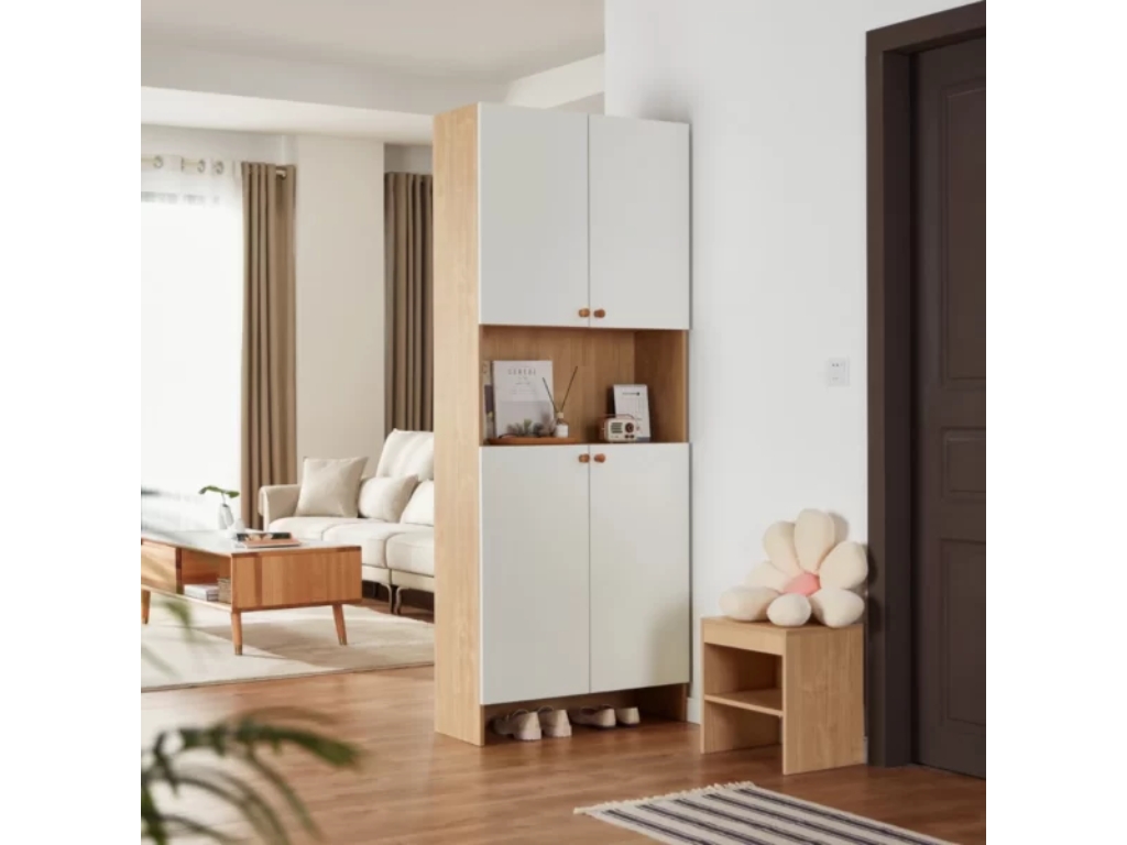Với kích thước W790 x D350 x H2000 mm, Tủ giày GHT30 phù hợp với những không gian cần hệ tủ cao và dung tích lưu trữ lớn. Chiều ngang gọn giúp tiết kiệm diện tích, trong khi chiều cao lớn giúp tận dụng tối đa không gian theo chiều đứng. Thiết kế này giúp Tủ giày GHT30 dễ dàng bố trí trong nhiều không gian khác nhau.