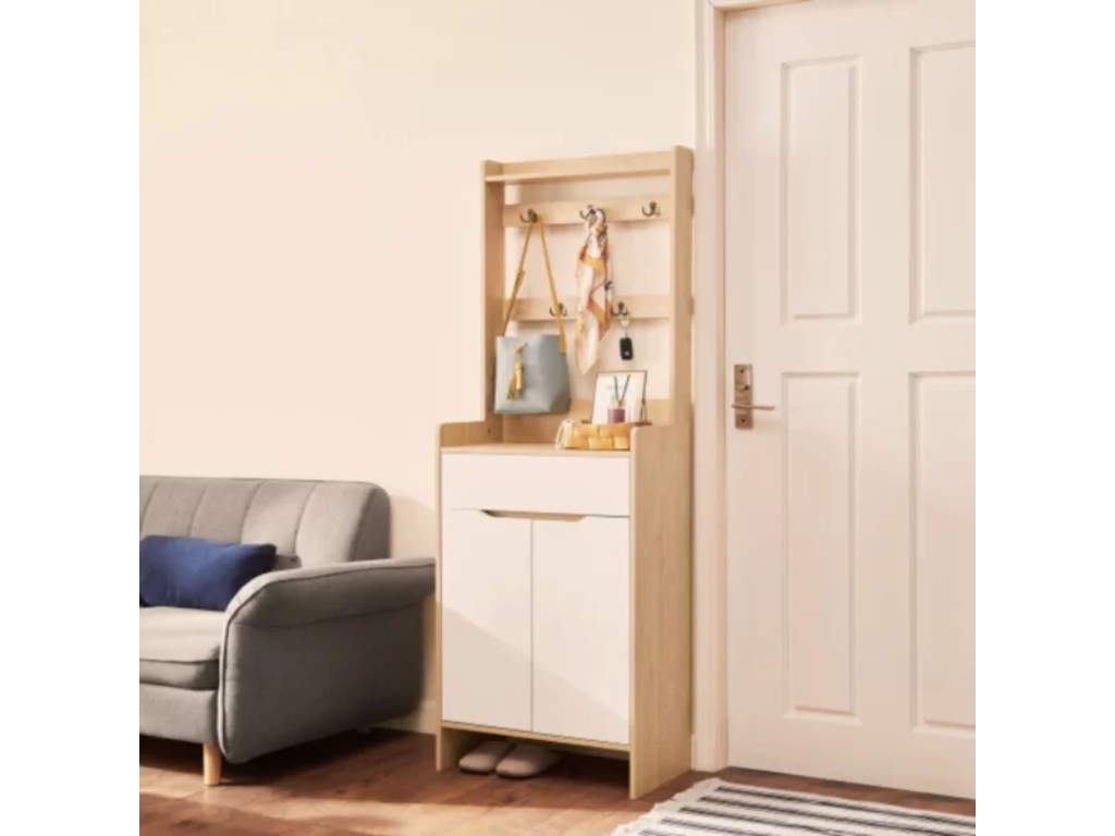 Điểm nổi bật của Tủ giày GHT34 nằm ở thiết kế tiện dụng với nhiều tầng kệ kết hợp hộc ngăn kéo. Các tầng kệ giúp phân loại giày dép rõ ràng và thuận tiện khi sử dụng hằng ngày. Hộc ngăn kéo hỗ trợ lưu trữ các vật dụng nhỏ như chìa khóa, tất hoặc phụ kiện, góp phần giữ cho khu vực lối vào luôn gọn gàng. Nhờ cấu trúc hợp lý, Tủ giày GHT34 mang lại sự tiện lợi trong quá trình sử dụng.