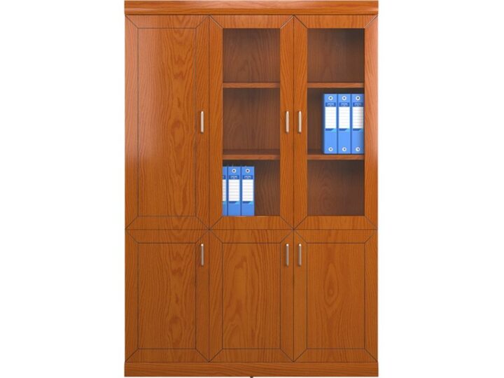 Phần dưới tủ gồm 3 cánh gỗ kín, giúp người dùng dễ dàng lưu trữ hồ sơ, tài liệu hoặc vật dụng nội bộ một cách gọn gàng, kín đáo. Cấu trúc chắc chắn, bản lề cao cấp cùng tay nắm kim loại sáng bóng tạo cảm giác sang trọng và bền bỉ trong quá trình sử dụng.
