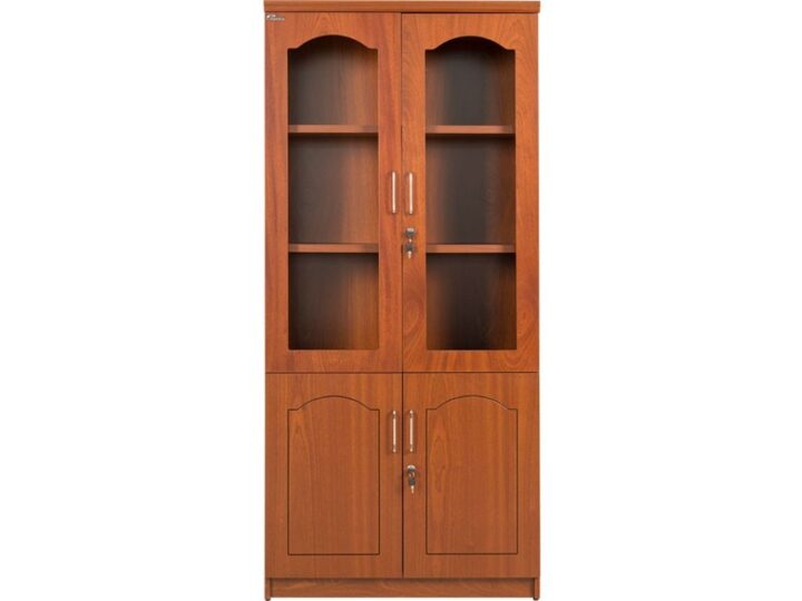 Phần khoang dưới được thiết kế với hai cánh gỗ mở truyền thống, đảm bảo độ kín đáo và an toàn cho các loại hồ sơ quan trọng. Sự kết hợp giữa cánh kính phía trên và cánh gỗ phía dưới mang lại sự hài hòa trong bố cục, vừa hiện đại vừa tinh tế, giúp tủ có thể phù hợp với nhiều phong cách nội thất khác nhau.